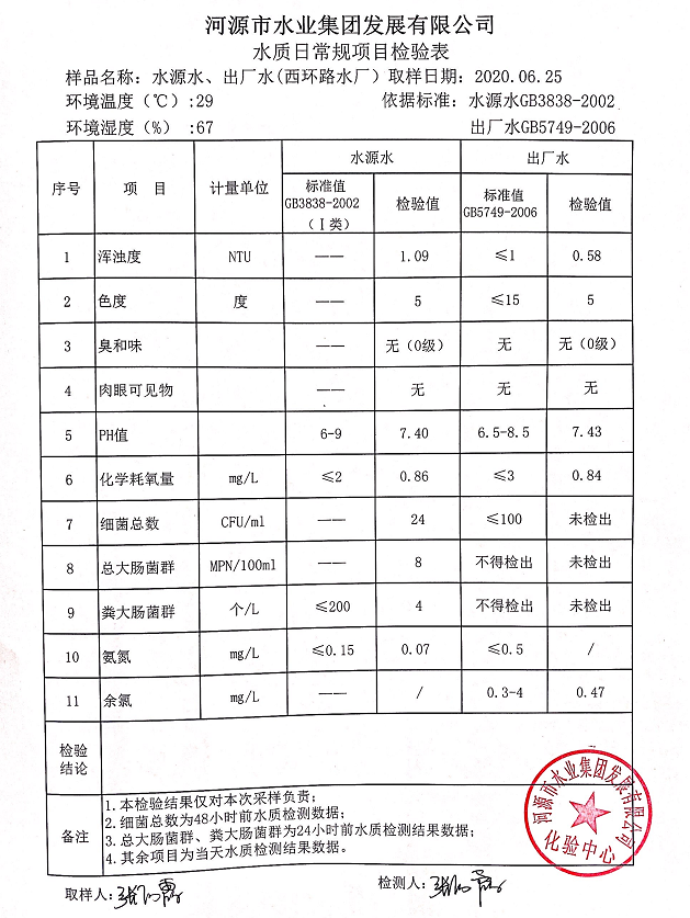 2020年6月25日水質檢驗報告