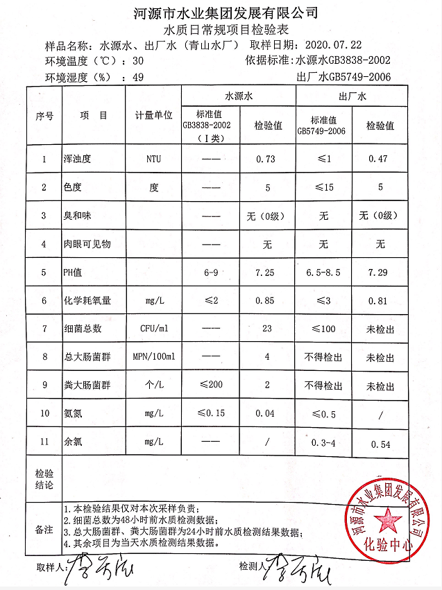 2020年7月22日水質(zhì)檢驗(yàn)報(bào)告