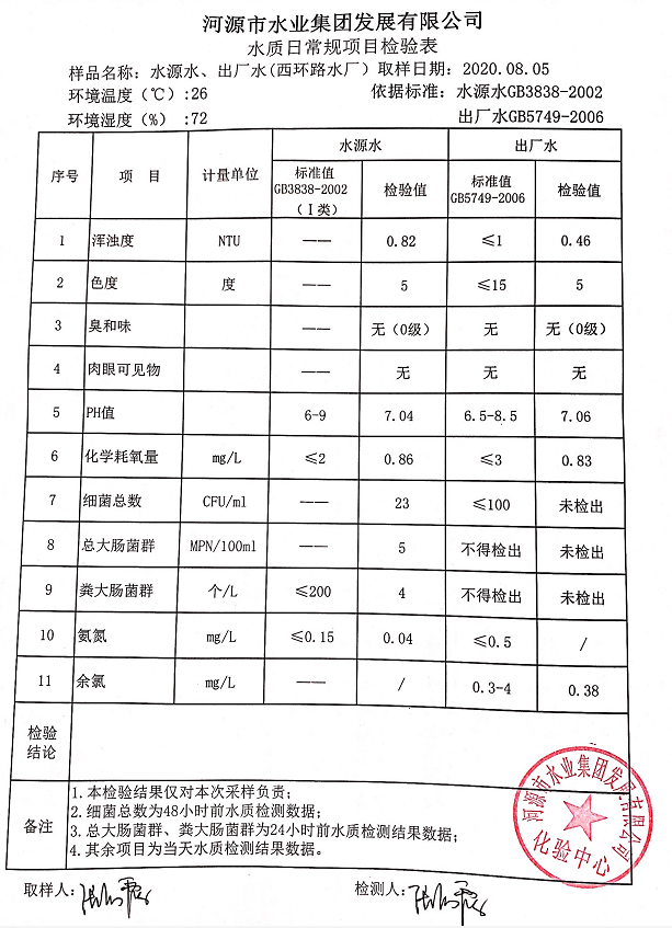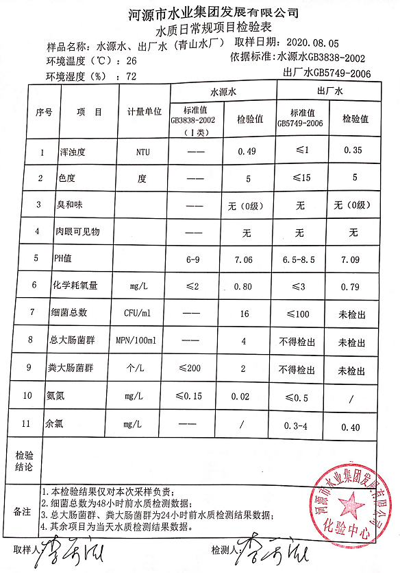 2020年8月5日水質(zhì)檢驗(yàn)報(bào)告