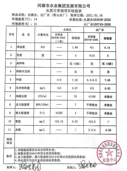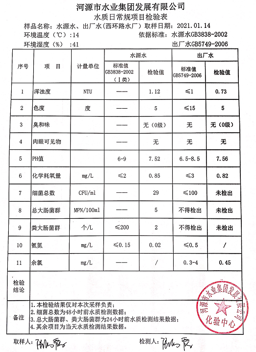 2021年1月14日水質(zhì)檢驗(yàn)報(bào)告