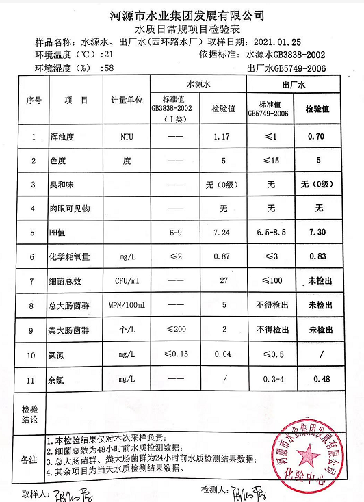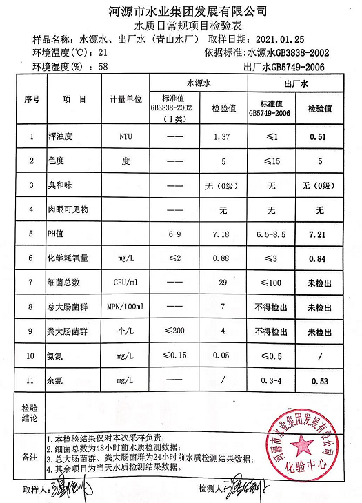 2021年1月25日水質檢驗報告