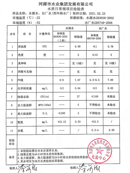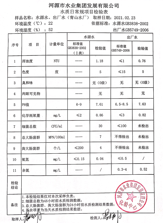 2021年2月23日水質檢驗報告