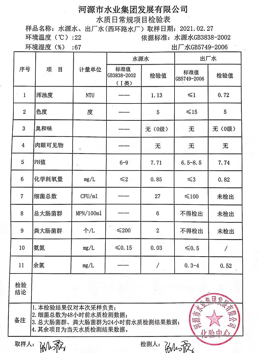 2021年2月27日水質(zhì)檢驗報告