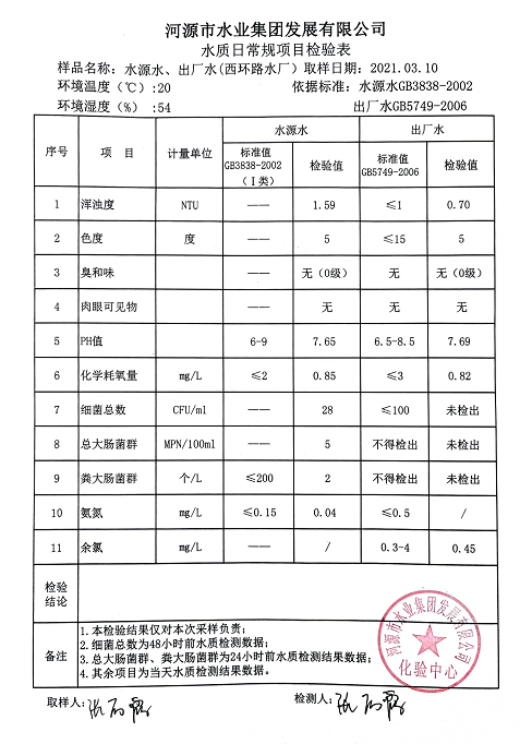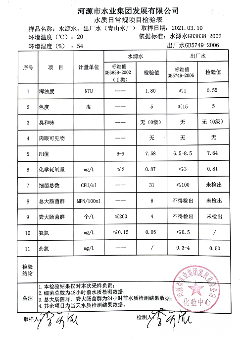 2021年3月10日水質檢驗報告