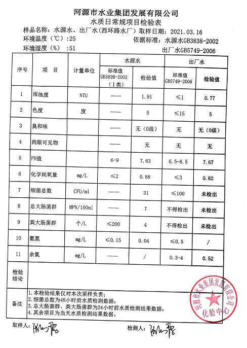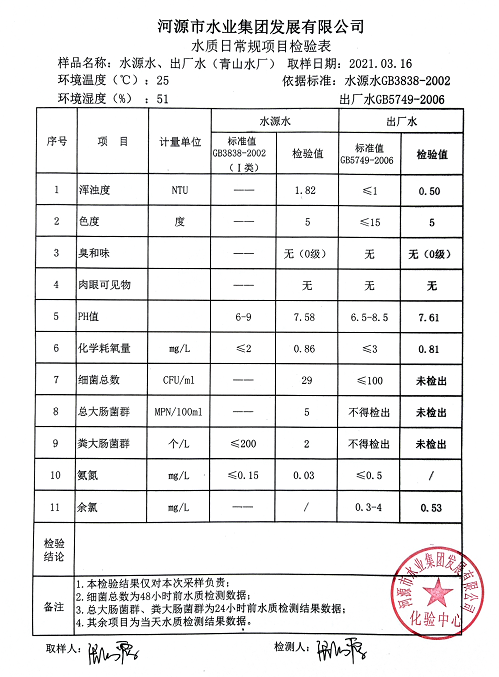 2021年3月16日水質檢驗報告