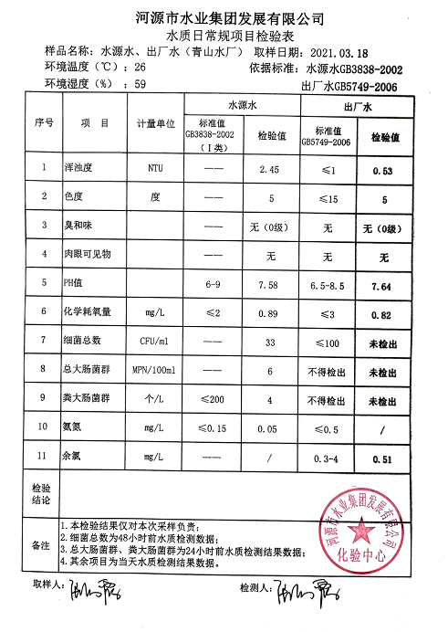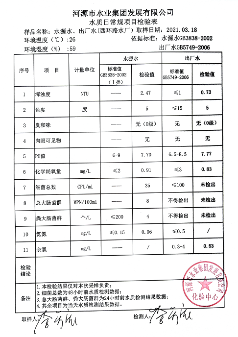2021年3月18日水質檢驗報告