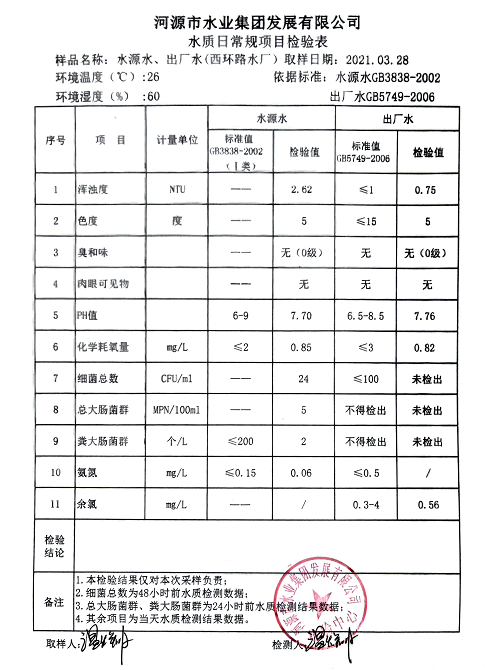 2021年3月28日水質檢驗報告