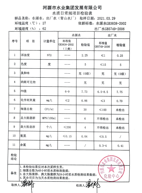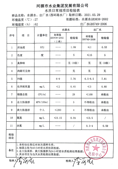 2021年3月29日水質(zhì)檢驗(yàn)報(bào)告