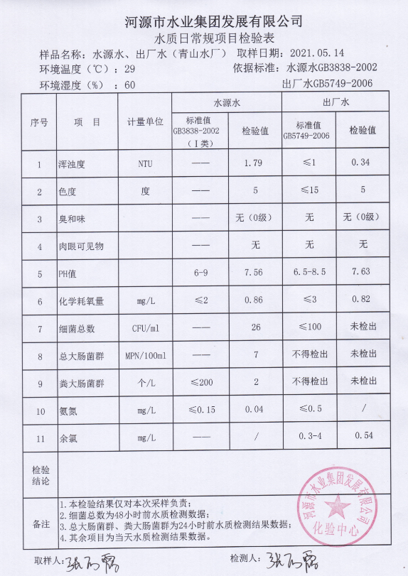 2021年5月14日水質(zhì)檢驗(yàn)報(bào)告
