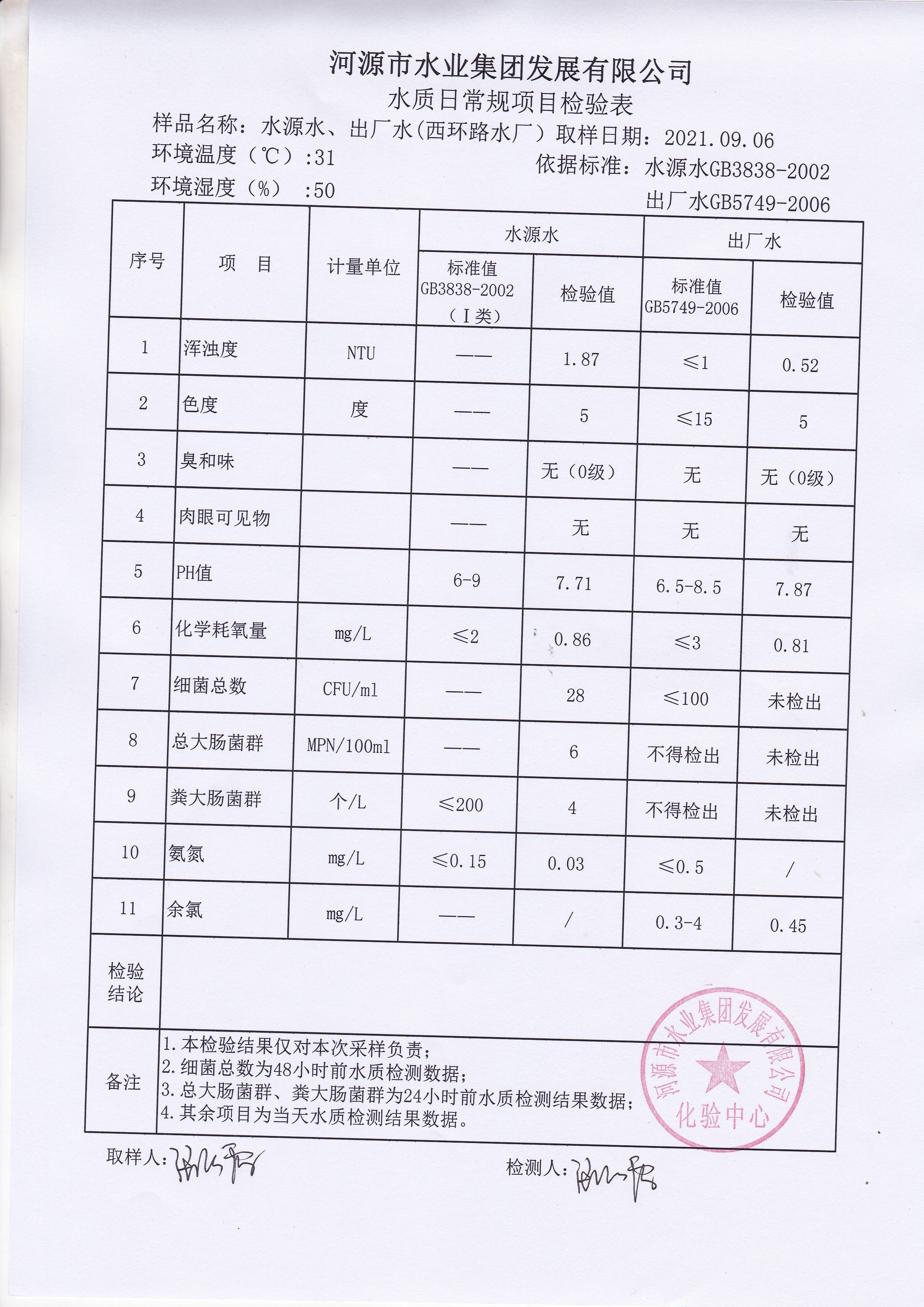 2021年9月6日水質(zhì)檢驗(yàn)報(bào)告 ????