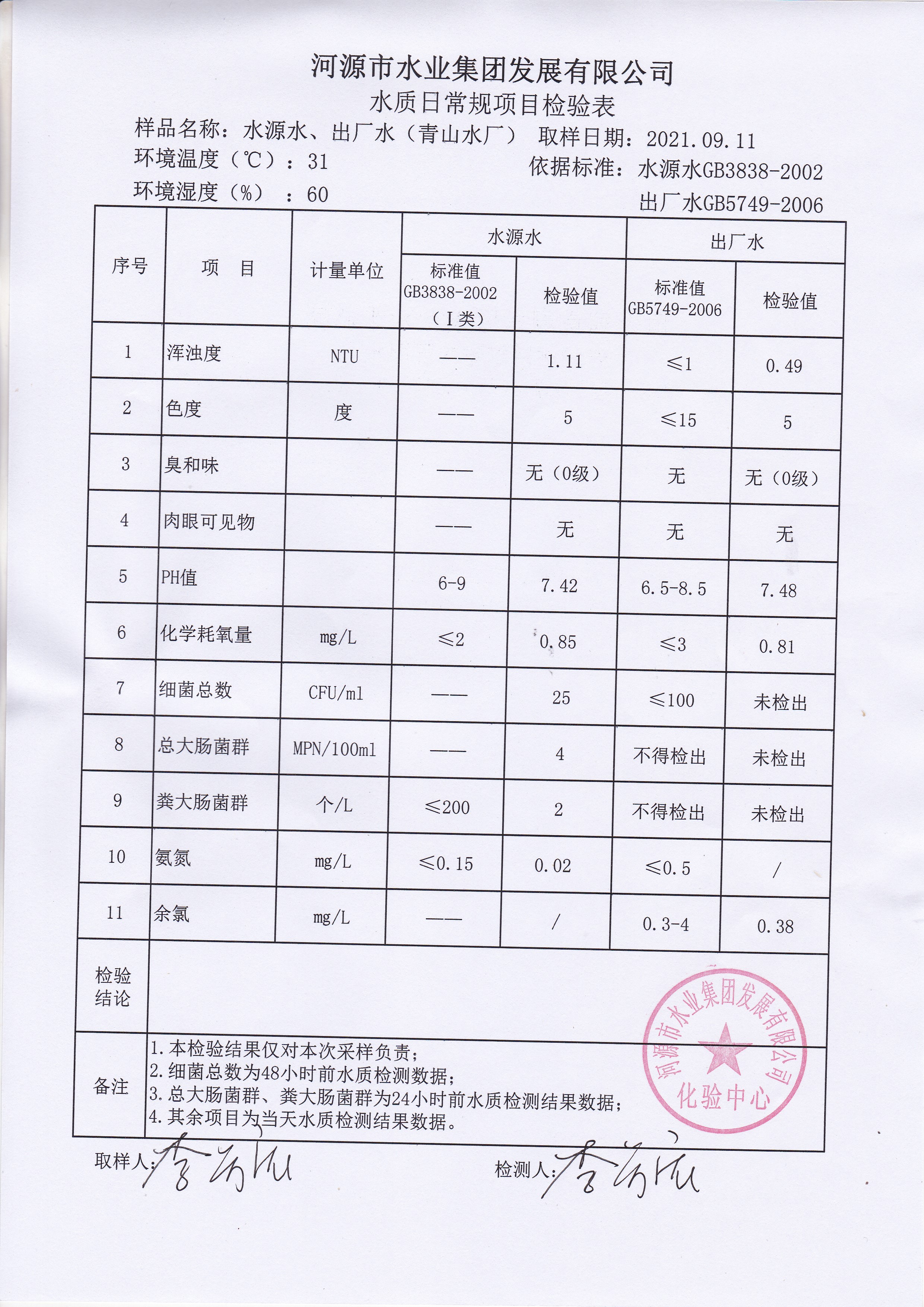 2021年9月11日水質檢驗報告 ??