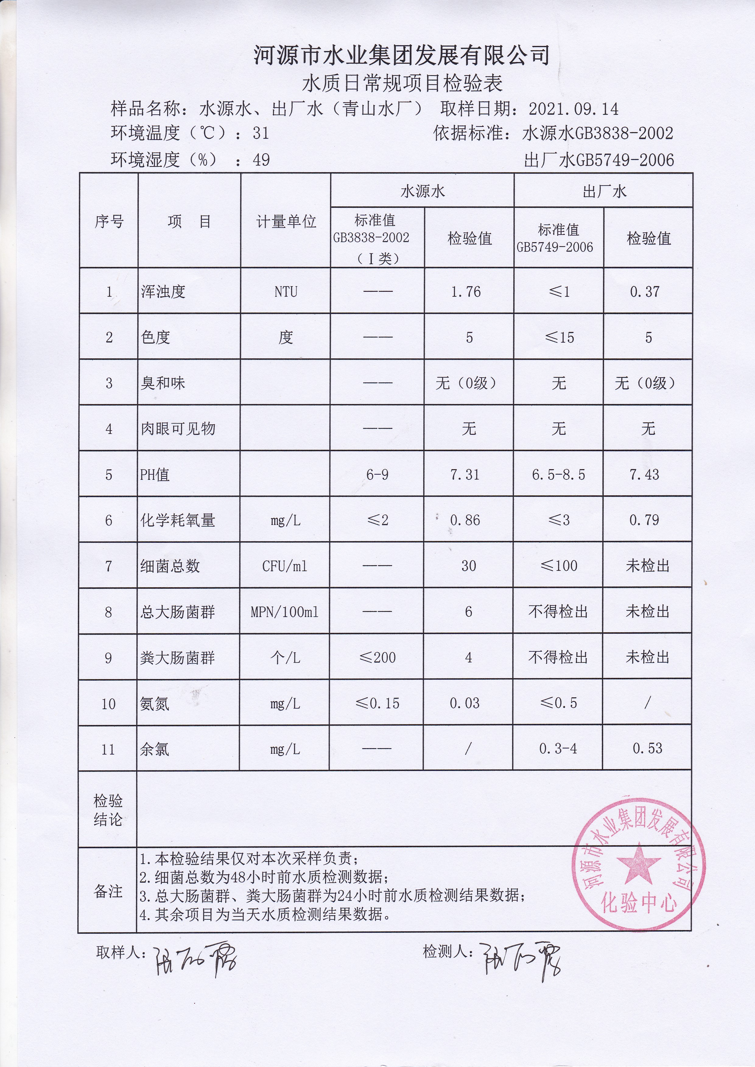 2021年9月14日水質(zhì)檢驗(yàn)報(bào)告 ??