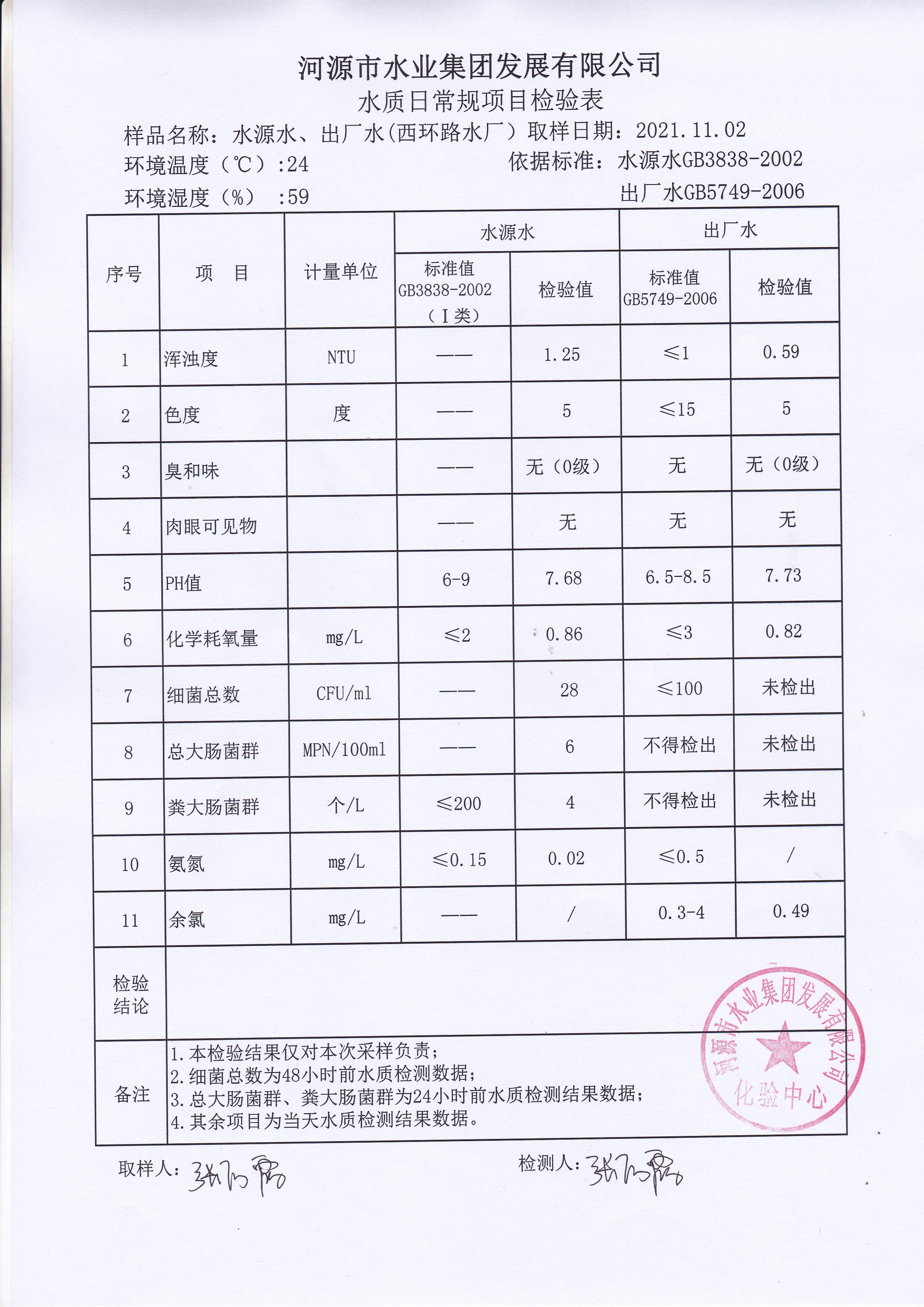 2021年11月2日水質檢驗報告