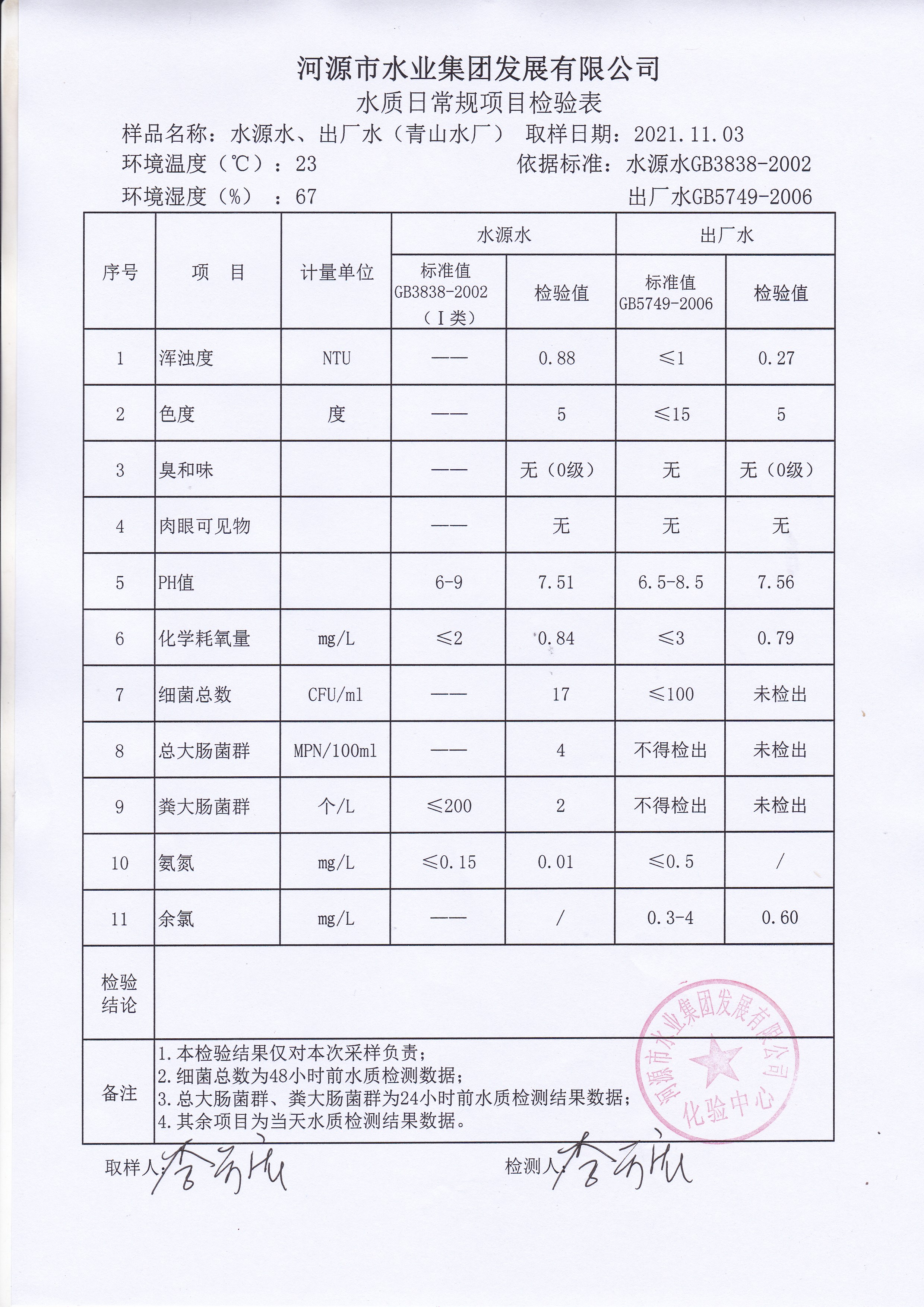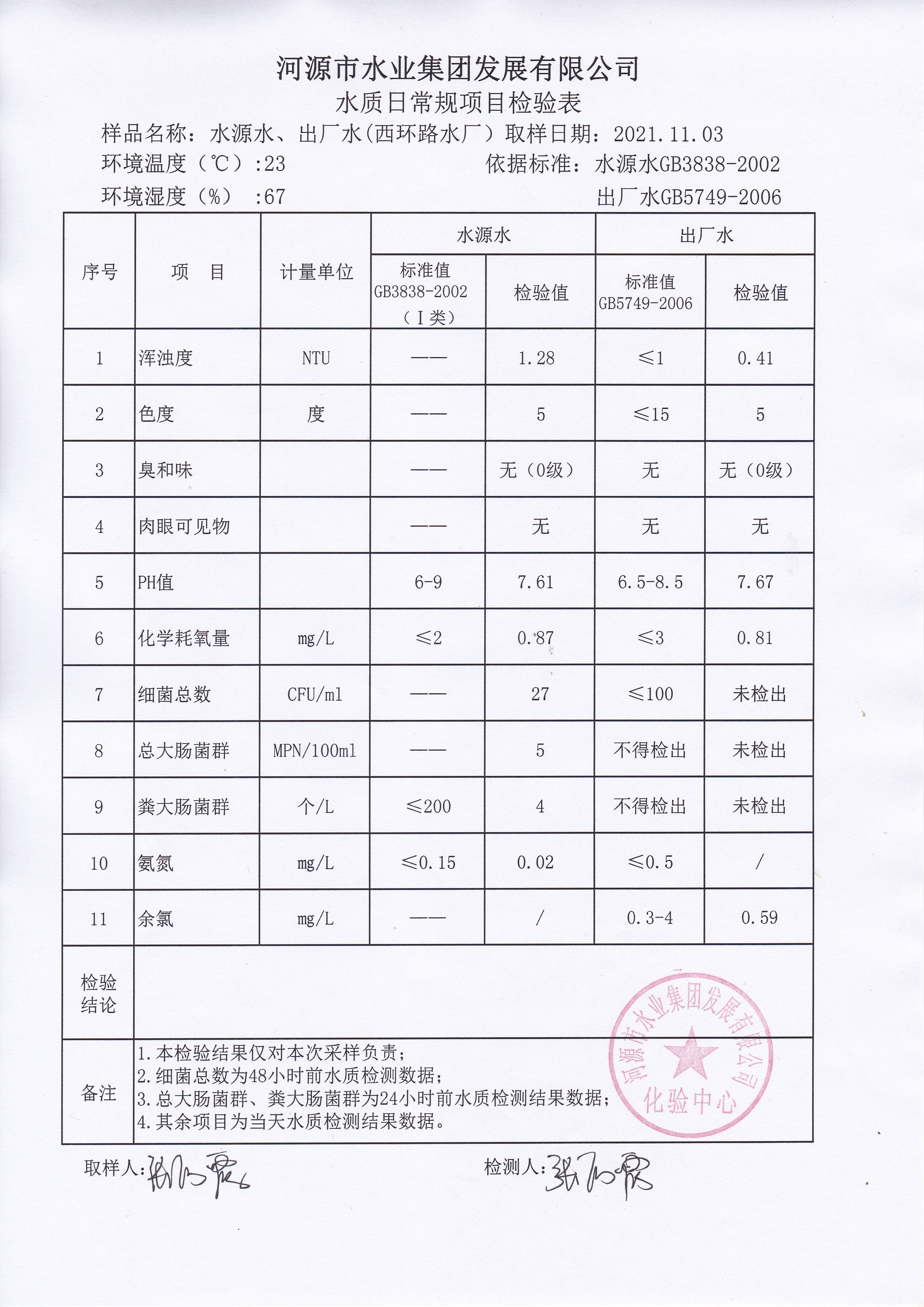 2021年11月3日水質檢驗報告