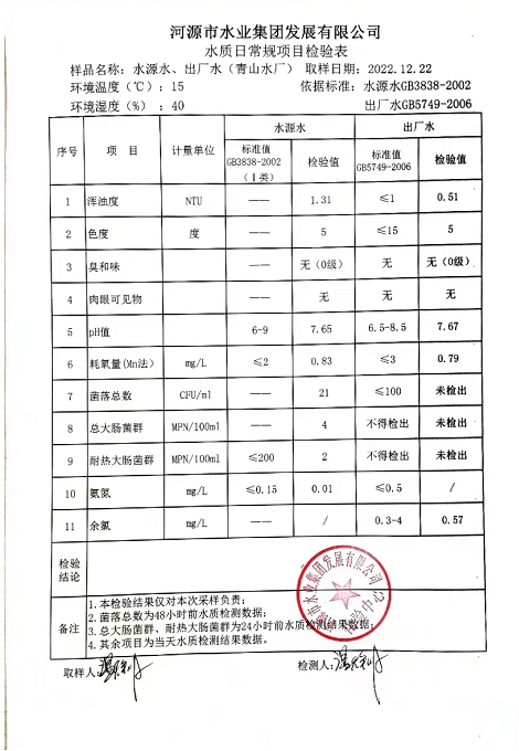 2022年12月22日水質檢驗報告