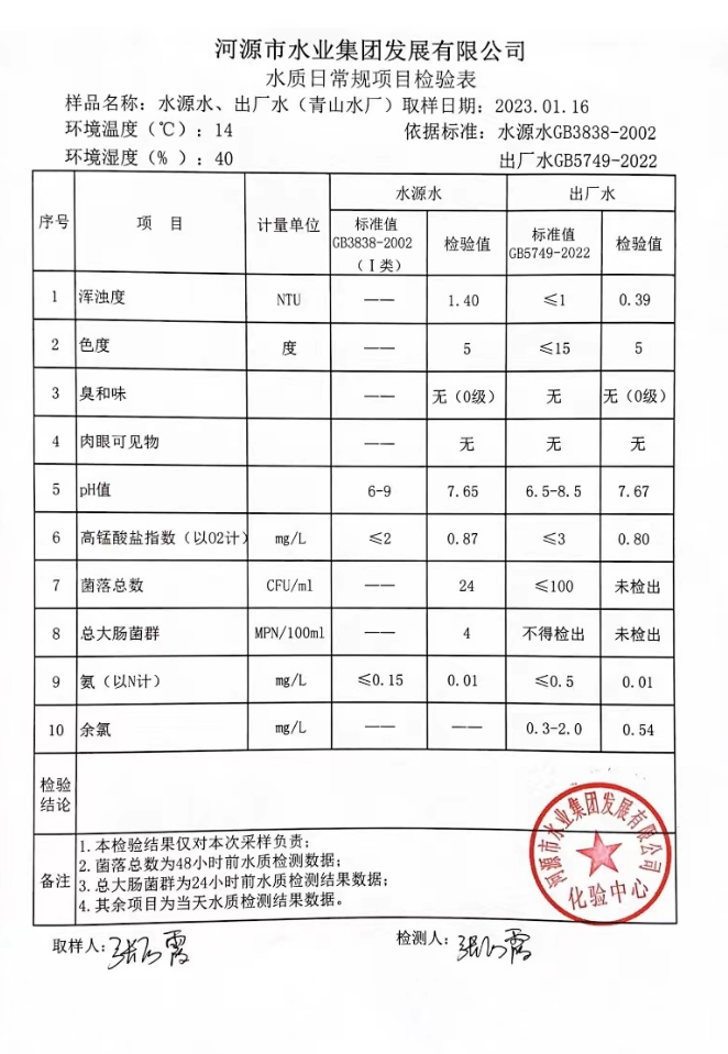 2023年1月16日水質檢驗報告