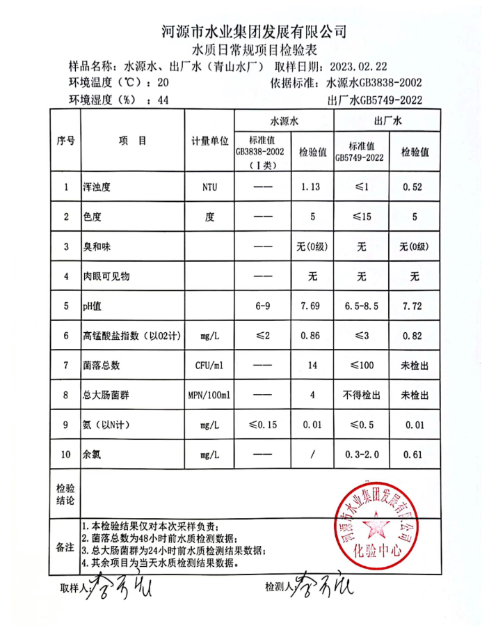 2023年2月22日水質檢驗報告
