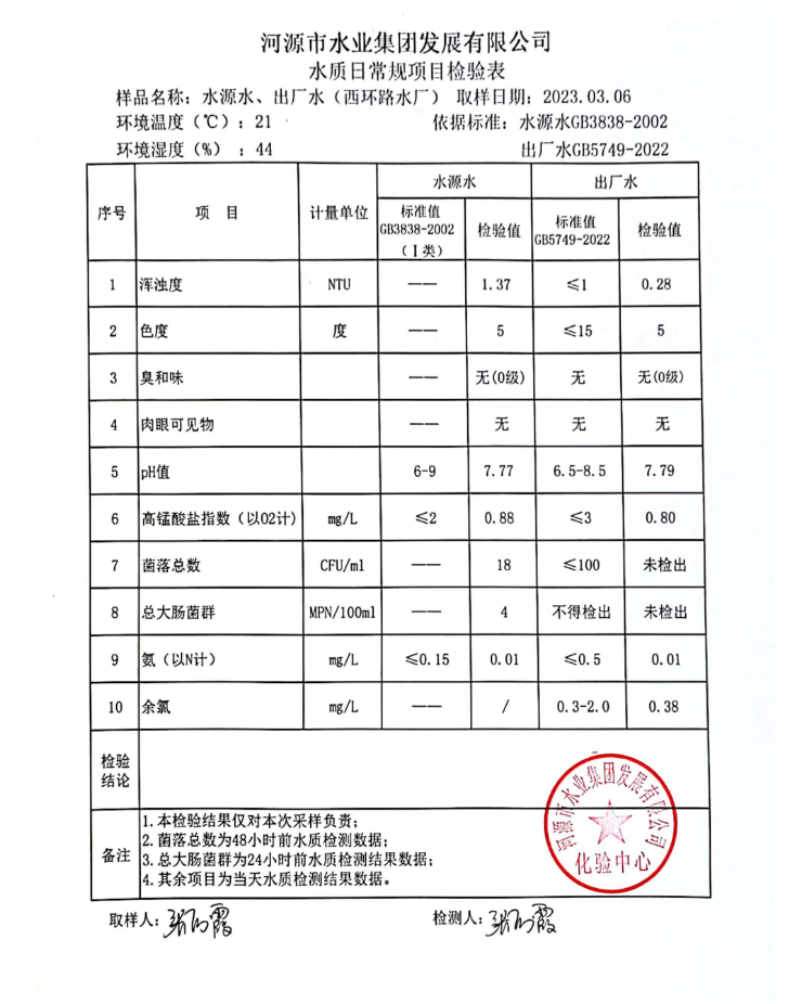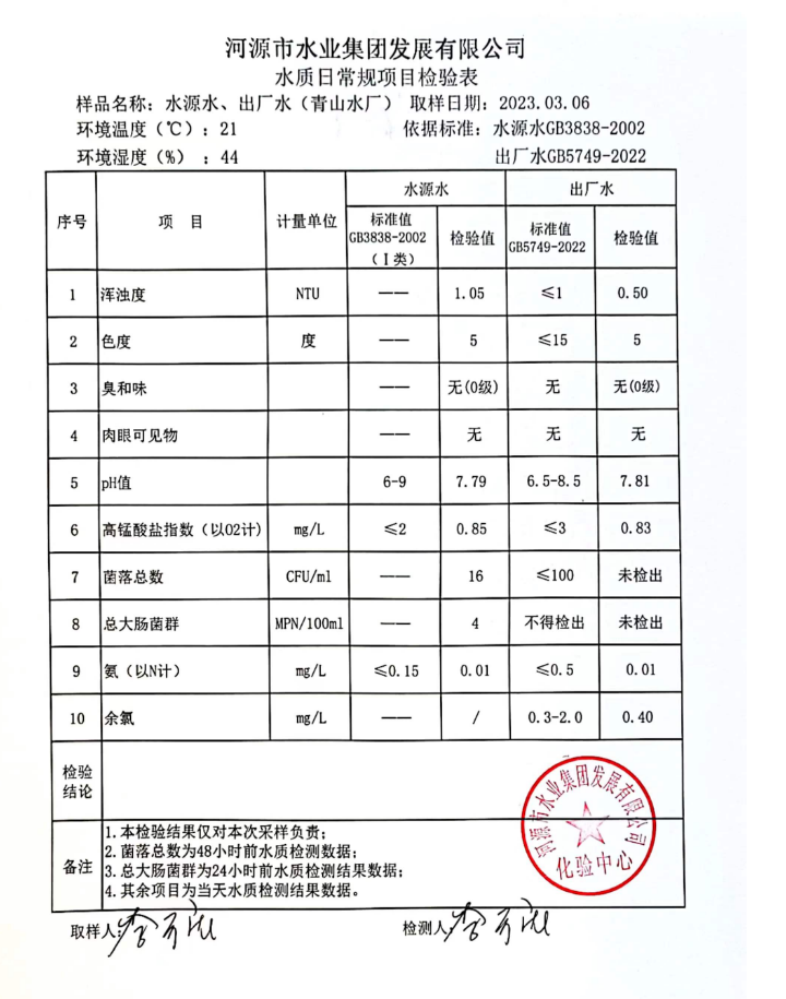 2023年3月6日水質檢驗報告