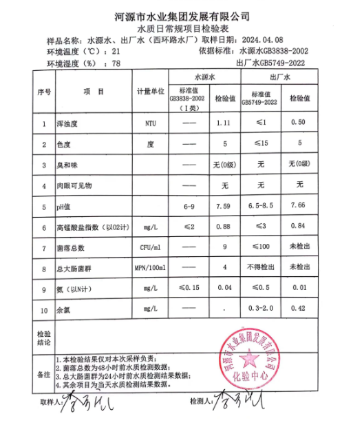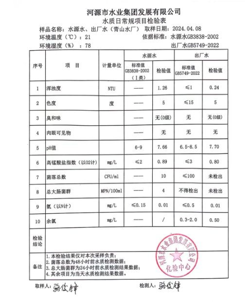 2024年4月8日水質檢驗報告