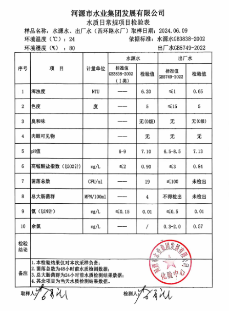 2024年6月9日水質(zhì)檢驗報告 ???