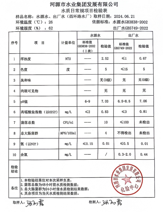 2024年6月21日水質檢驗報告
