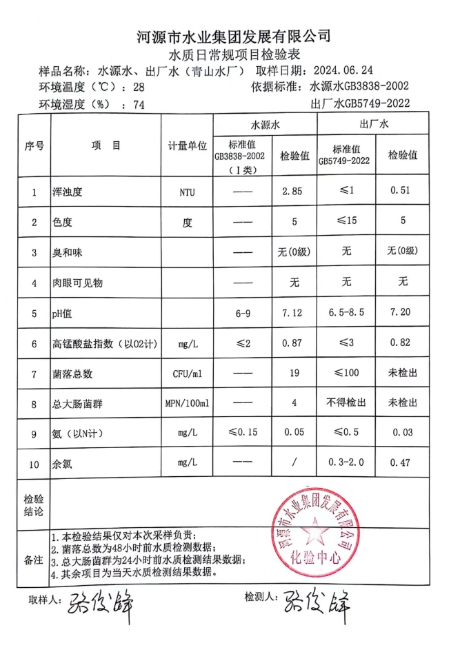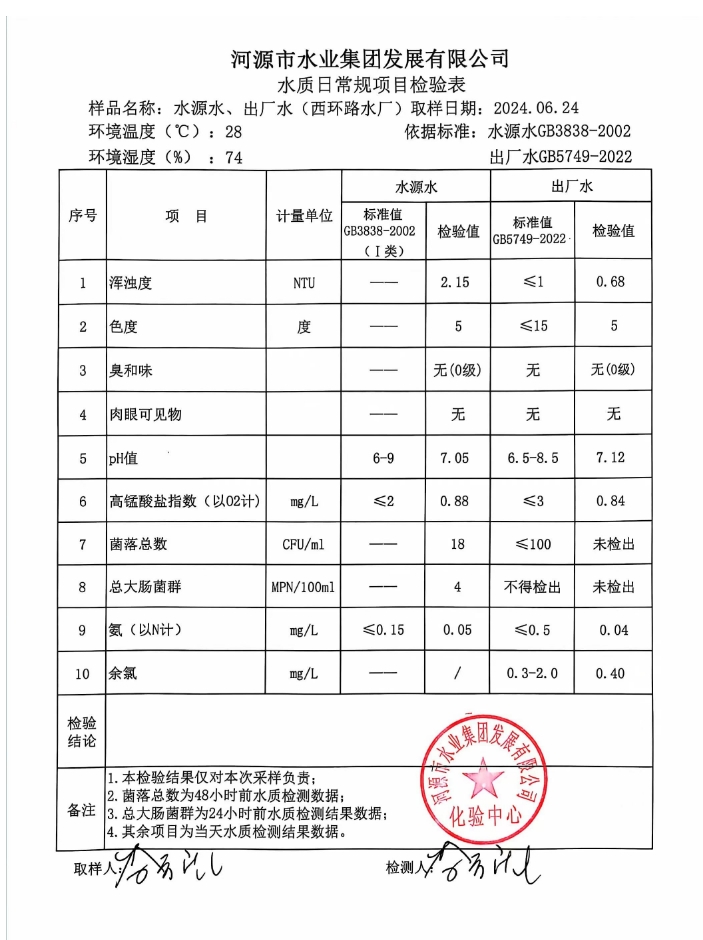 2024年6月24日水質檢驗報告