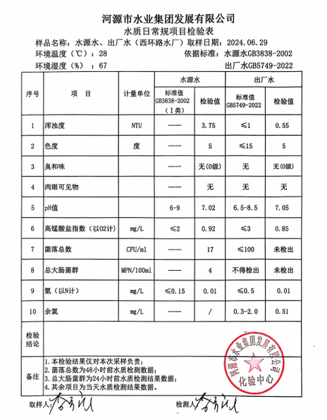 2024年6月29日水質檢驗報告