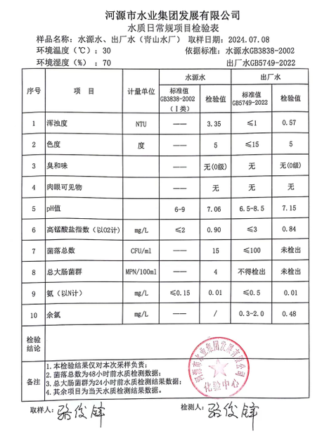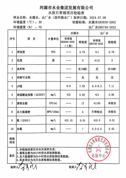 2024年7月8日水質檢驗報告
