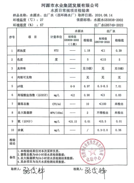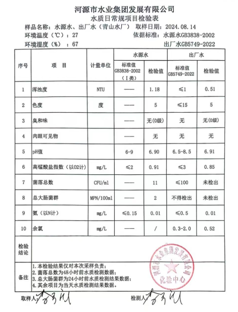 2024年8月14日水質檢驗報告