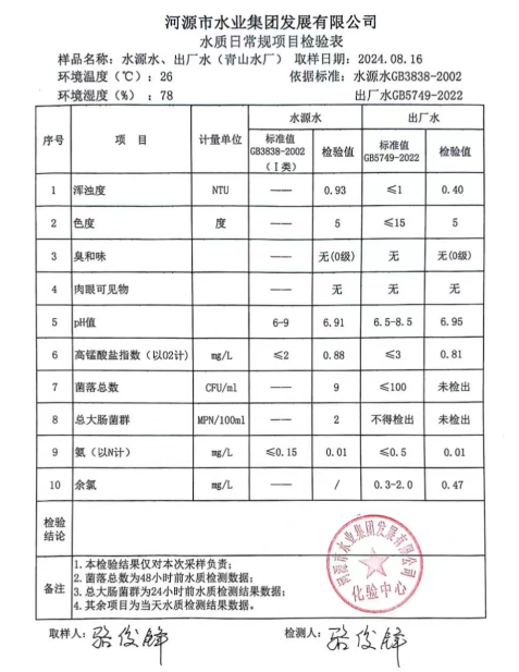 2024年8月16日水質(zhì)檢驗(yàn)報(bào)告