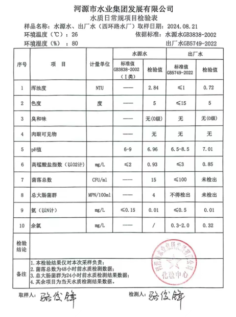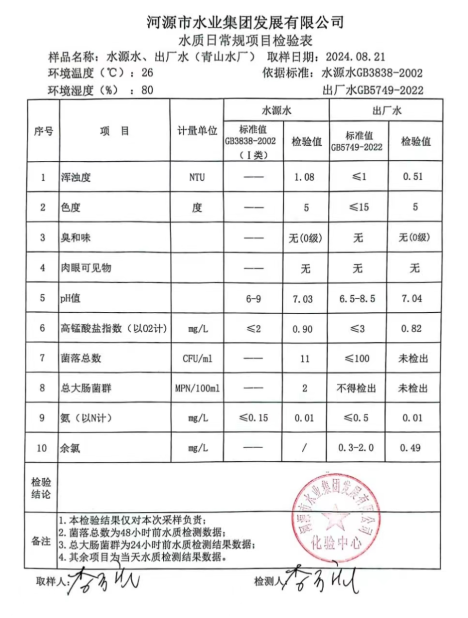 2024年8月21日水質(zhì)檢驗(yàn)報(bào)告