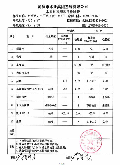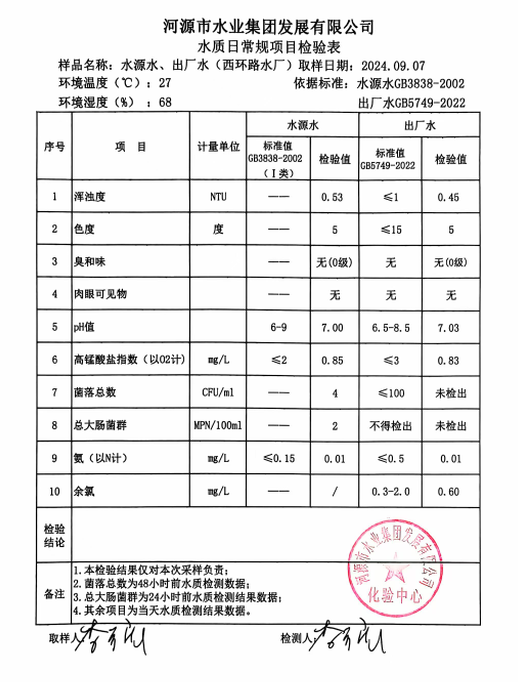 2024年9月7日水質(zhì)檢驗報告