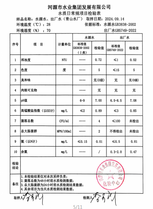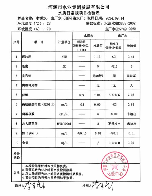 2024年9月14日水質檢驗報告