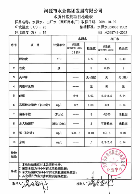 2024年10月9日水質檢驗報告
