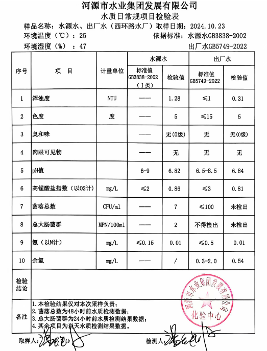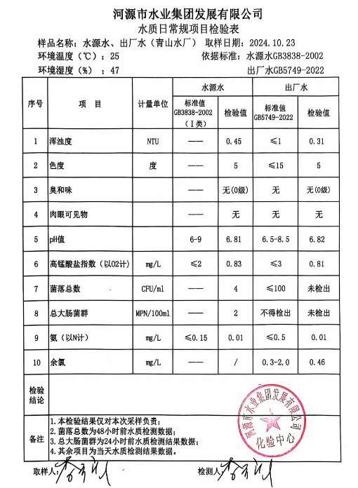 2024年10月23日水質檢驗報告